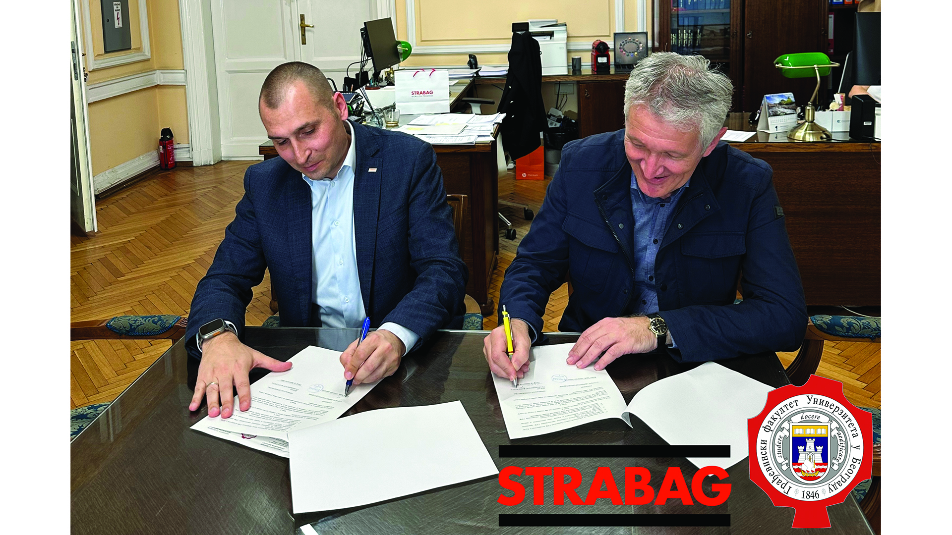 Уговор су потписали технички директор STRABAG-а у Србији, господин Војин Зајић, и декан Грађевинског факултета, проф. др Бранислав Бајат.